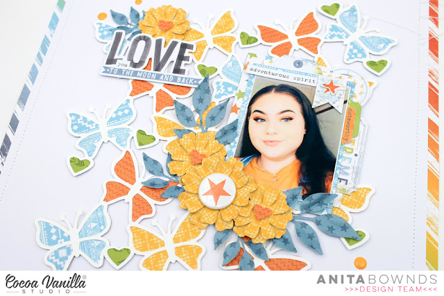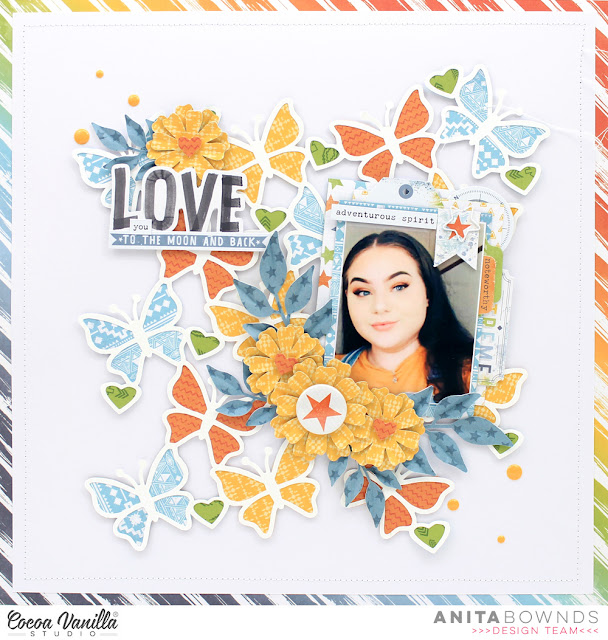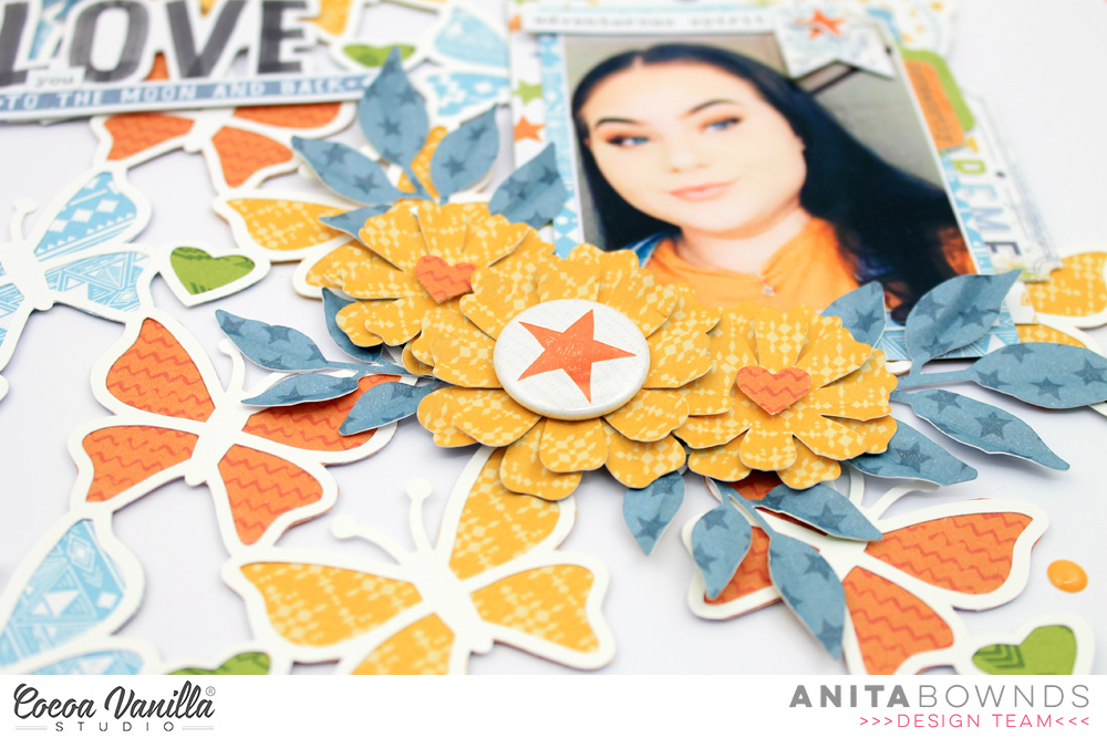 Yes you can make beautiful girly layouts with a boy collection and using a cut file can help a lot if you don’t know where to start ..my go to is flowers totally love them!! I really enjoy making them and adding lots of depth and colour and they always give that feminine touch to any project